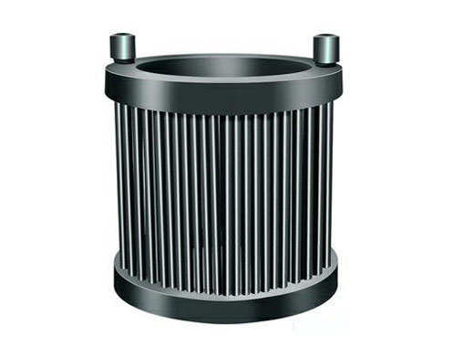 鼠籠式石墨熱器的結構是由上下蓋板,上、下管板、石墨管、折流板等零部件膠結而成 (參見圖),一般安裝于反應罐、貯槽中,上管板四周與反應器內壁用四氟板或石墨塊卡緊,以避免晃動及與容器相撞擊,管內流通腐蝕性或非腐蝕性載體,如冷凍鹽水或飽和水蒸汽、結垢輕微,管外與腐蝕性母液接觸,容易清洗,管子可以選用Φ32/Φ22、Φ50/Φ36兩種、內部采用折流板,提高傳熱效率,管子排列可分為一排、兩排、三排。具體可按用戶需要設計規格。